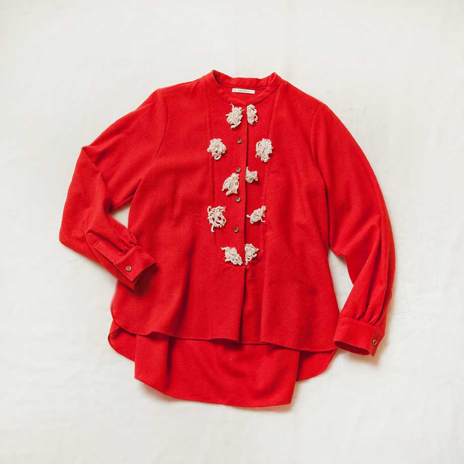 エタブル定番のブラウス。「BLOCK」と「BLOCK-K」のコンビネーション。