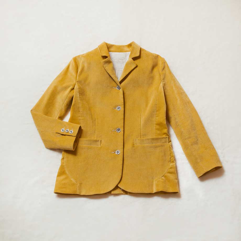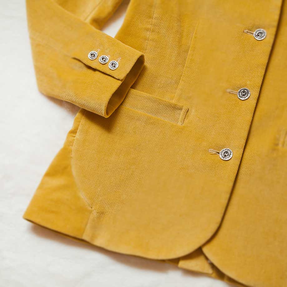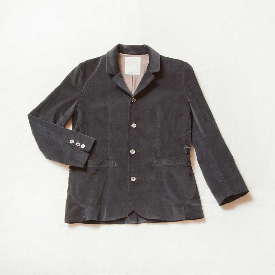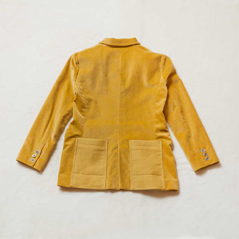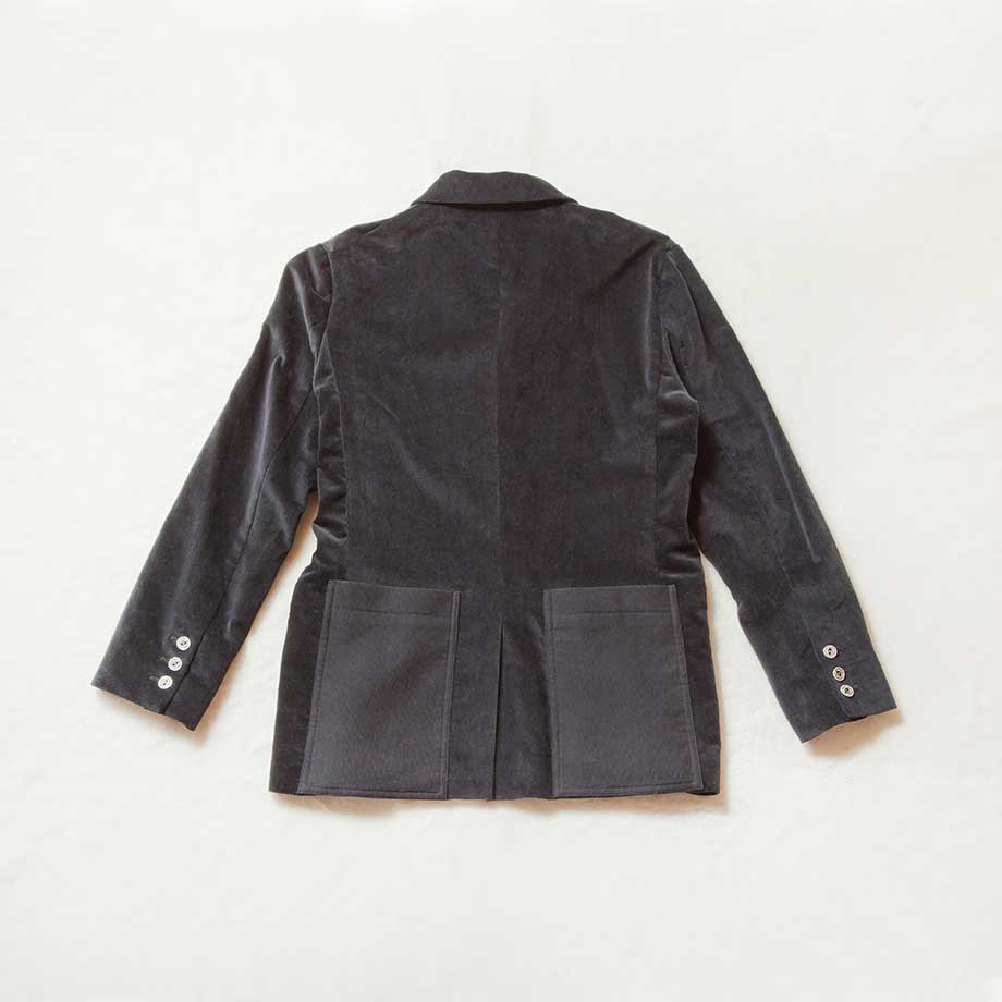 背中にもポケットがあるデザインのジャケット。表裏で表情が異なる生地の特徴をいかして、生地の表と裏を使っている。