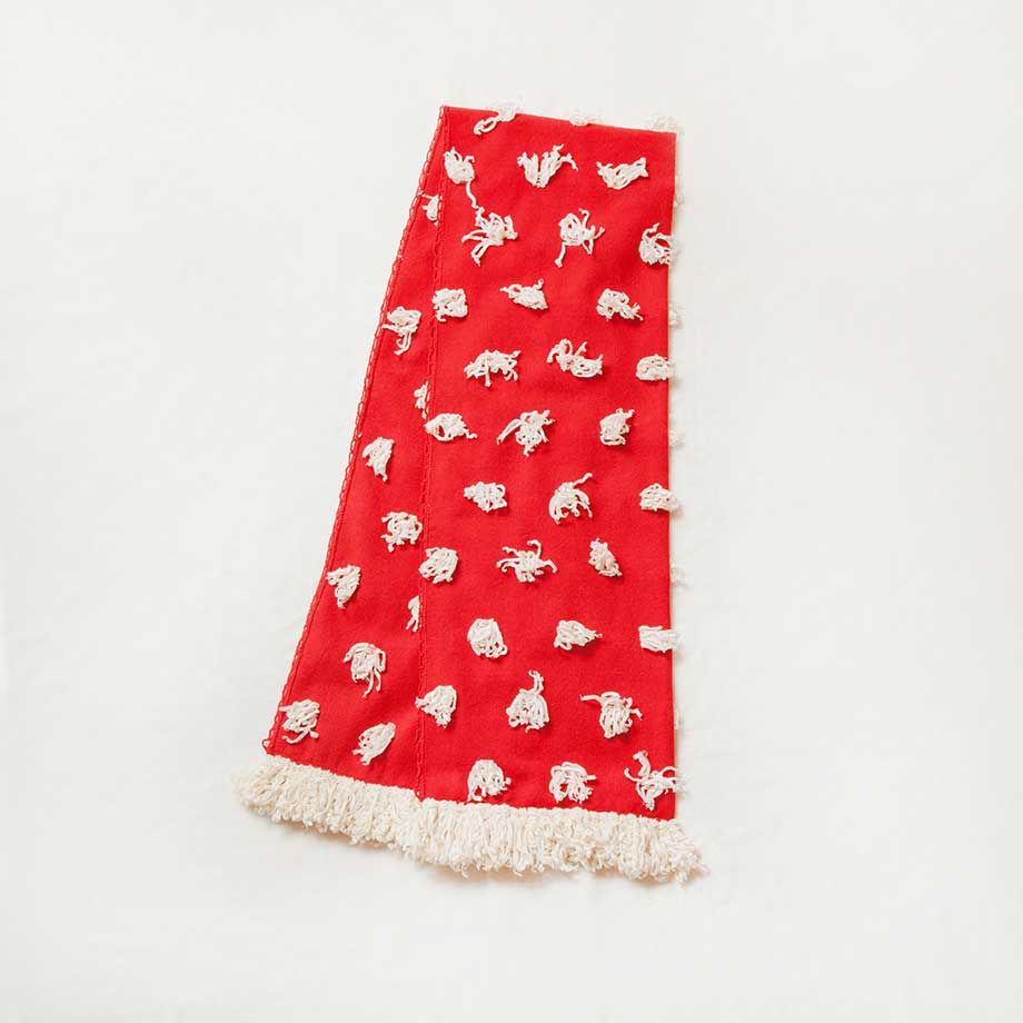 FRINGE:綿花が咲いているイメージで綿糸フリンジをLAMB生地に織り込んだ、ウールとコットンが合わさったエタブルオリジナル生地です。