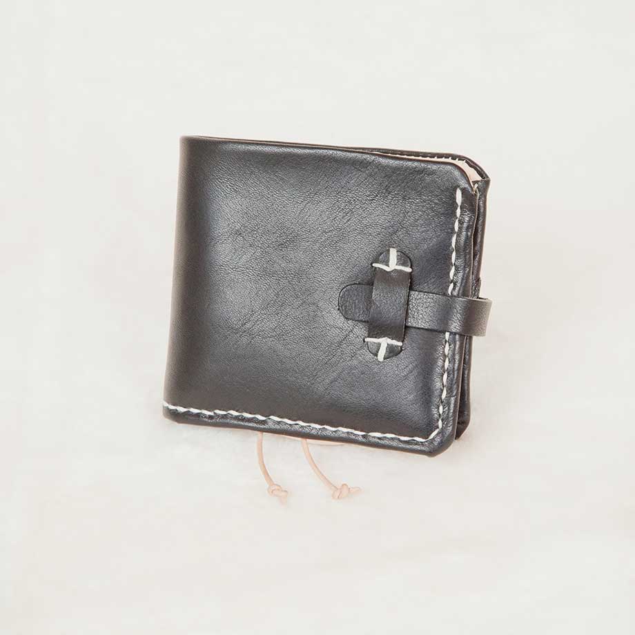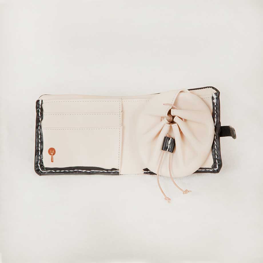 定番のお財布の新色。小銭入れ部分が巾着になっている。使うほどに馴染んでくる。